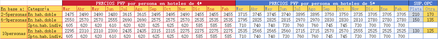 *Precios en Euros